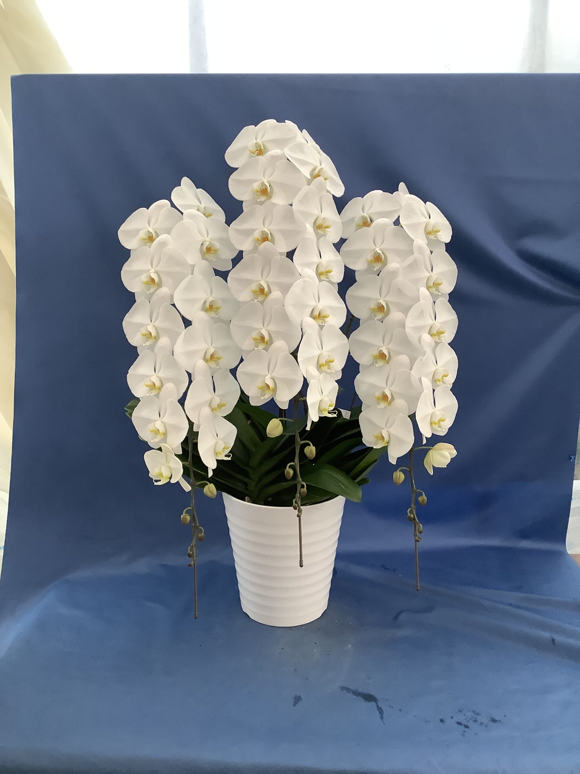 大輪胡蝶蘭 白 3本立て ¥37,675 美しい白 最上の大輪胡蝶蘭 価格:37,675円(税込み) 200サイズ 価格 ¥43,045(税込) 本体価格 ¥37,675(税込) 送料(東京都内) ¥3,720 お箱代 ¥770 ラッピング代 ¥880