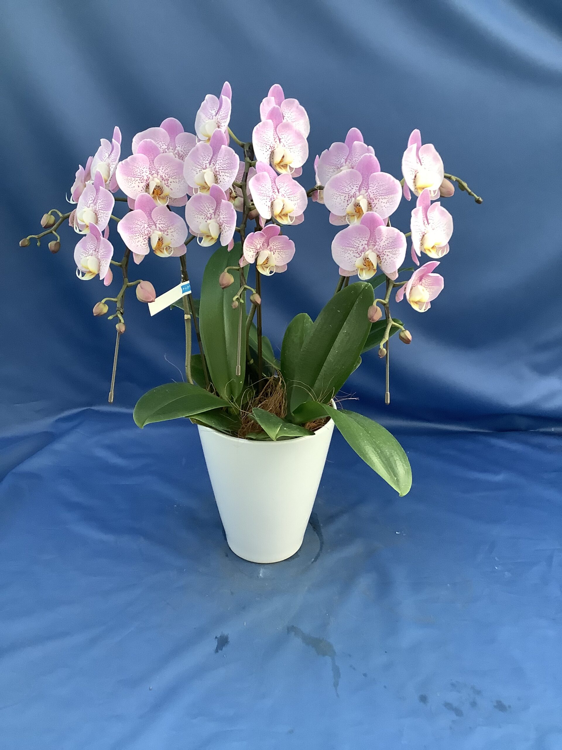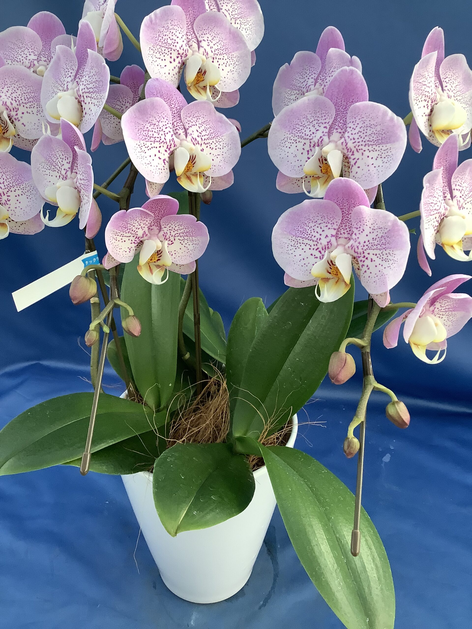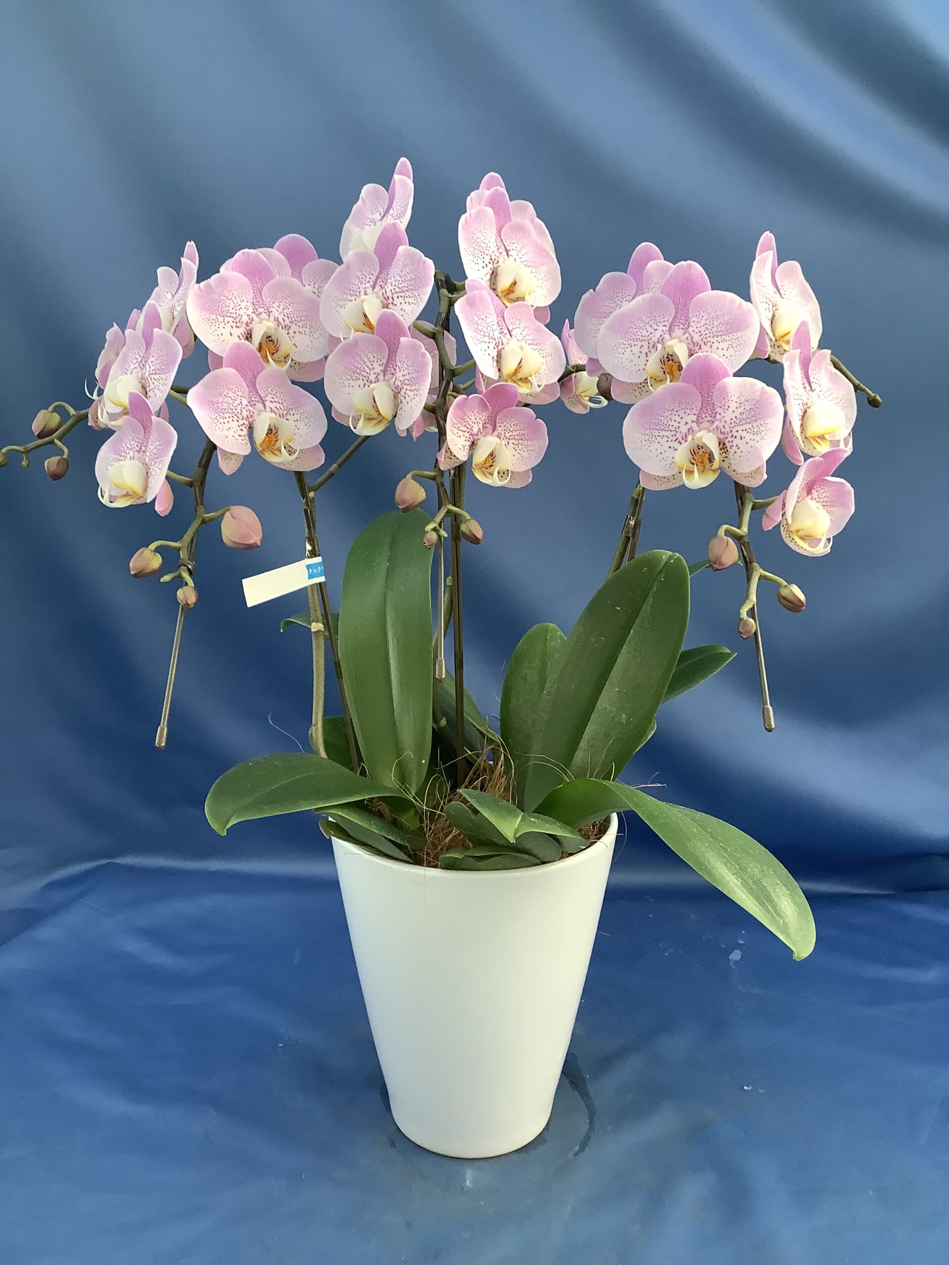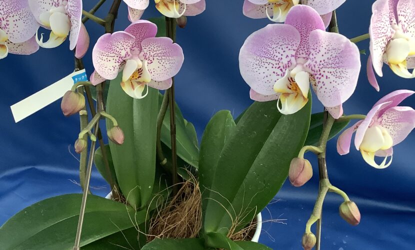 ミディ胡蝶蘭 アケボノ 3本立て ¥10,450 花の模様が特徴的なミディ胡蝶蘭 価格:10,450円(税込) 140サイズ ¥13,100(税込) 本体価格 ¥10,450 送料(関東地区) ¥1,630 お箱代 ¥440 ラッピング代 ¥580