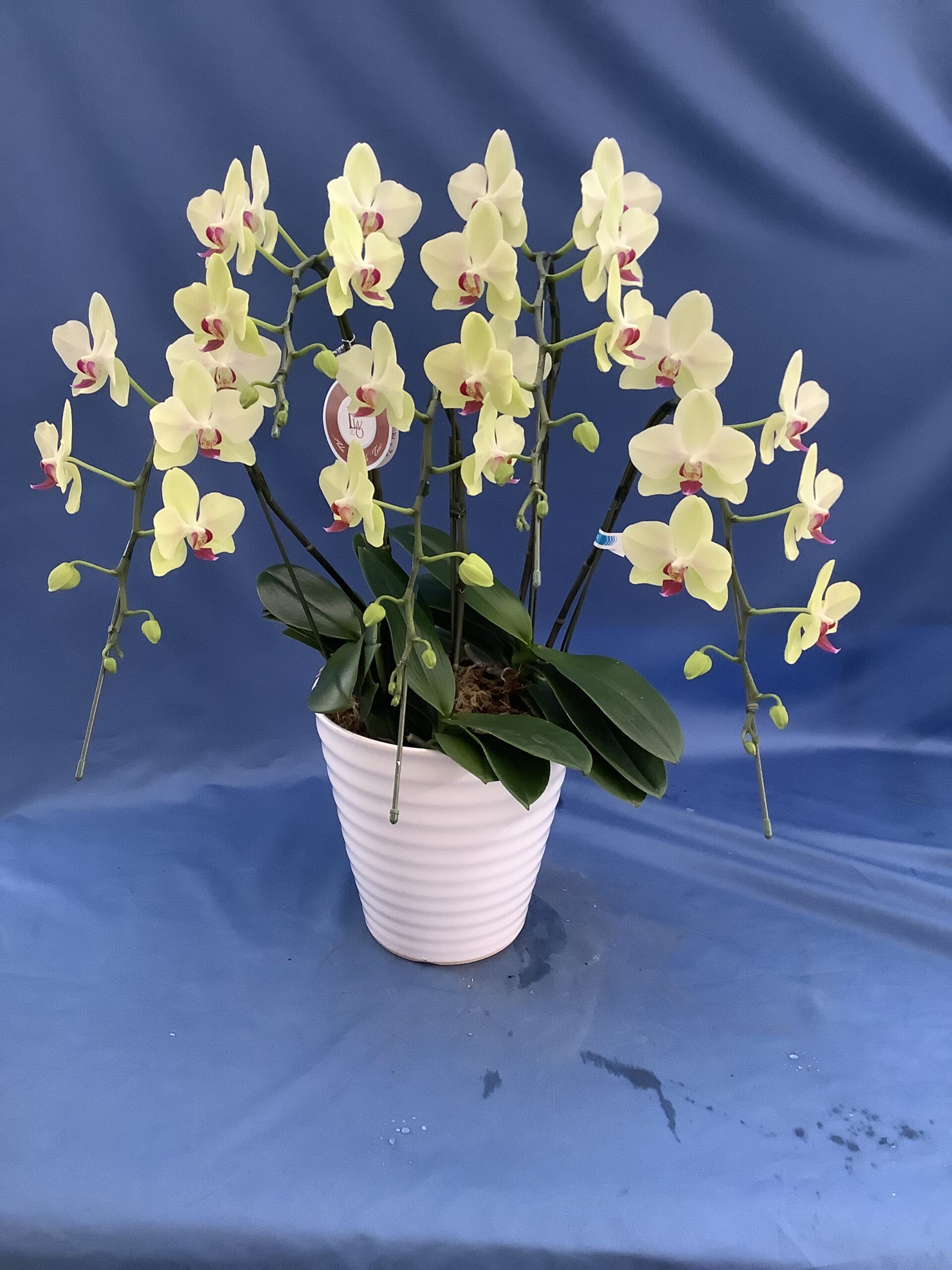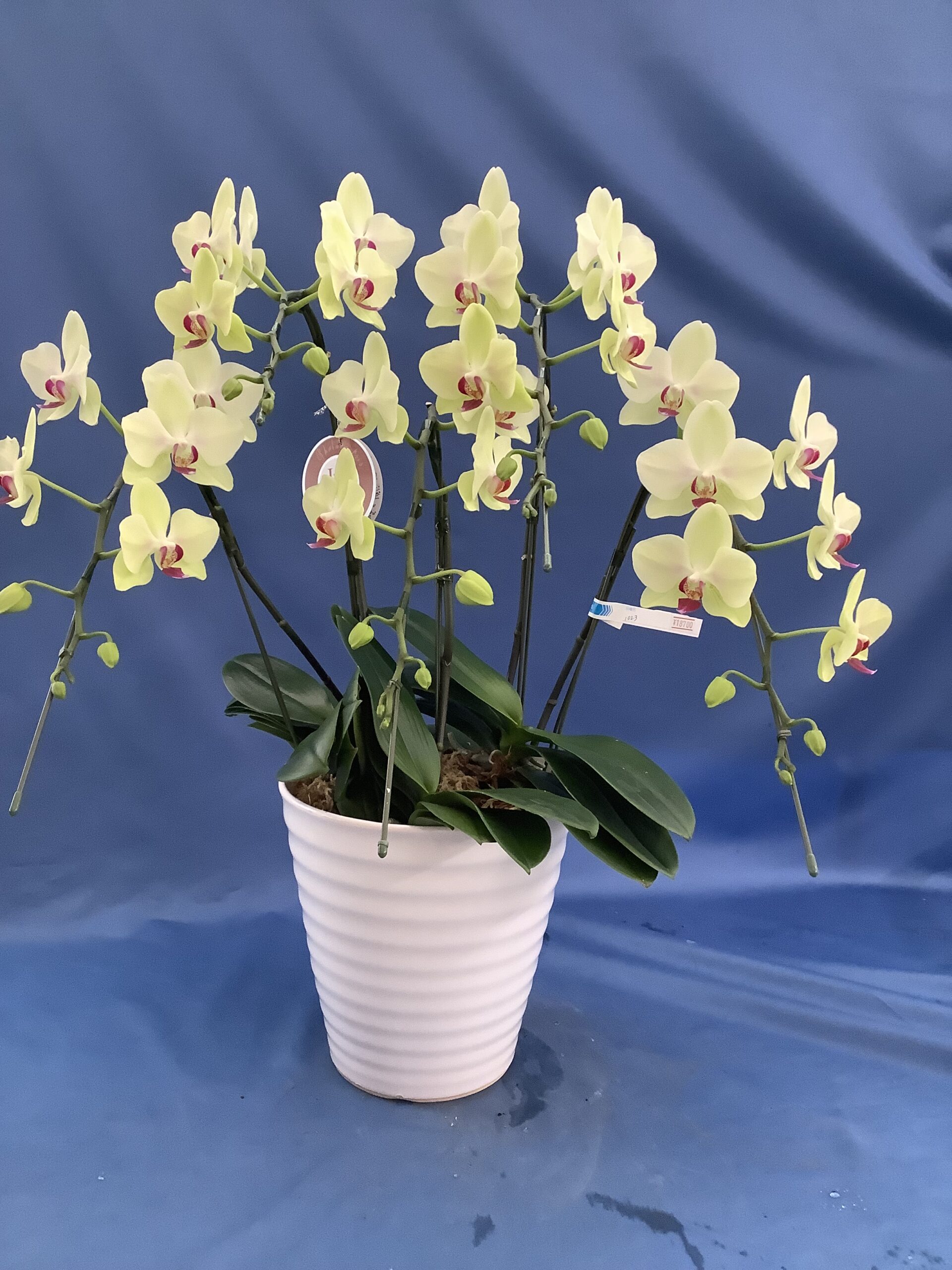ミディ胡蝶蘭 ザルツマン 5本立て ¥18,700 気持ちを明るくする珍しいイエローの胡蝶蘭 参考価格:18,700円(税込) 170サイズ 価格 ¥22,080(税込) 本体価格 ¥18,700 送料(関東地区) ¥2,140 お箱代 ¥660 ラッピング代 ¥580
